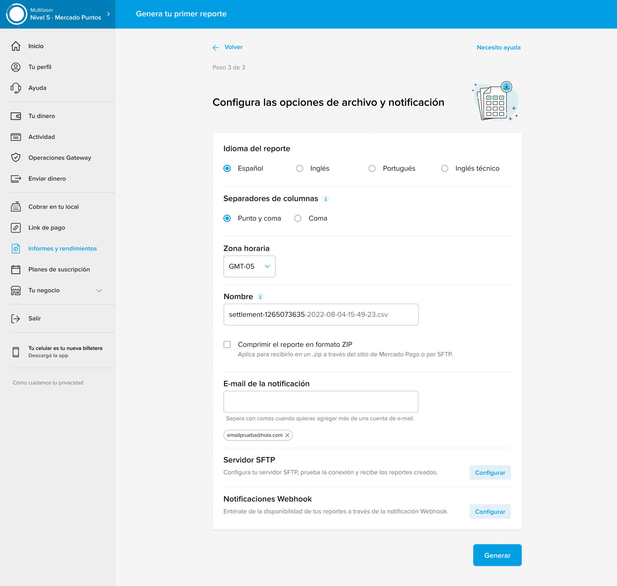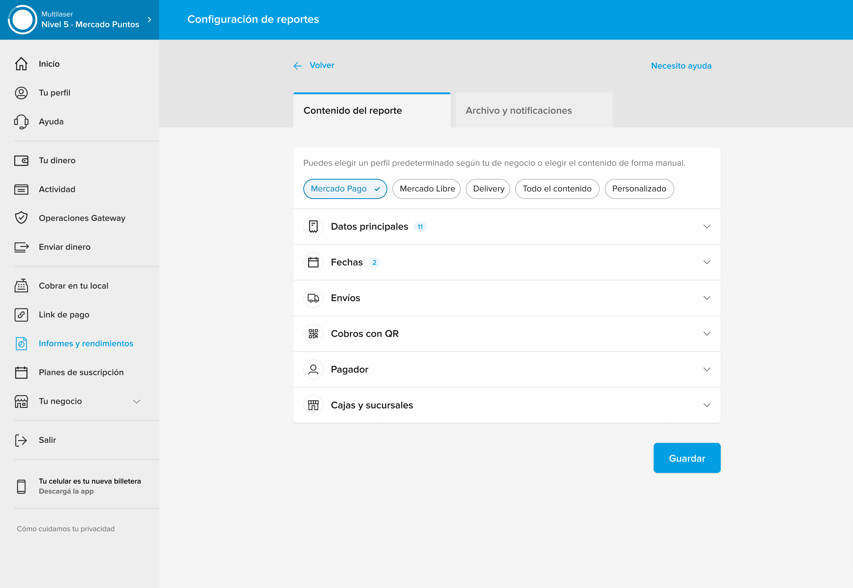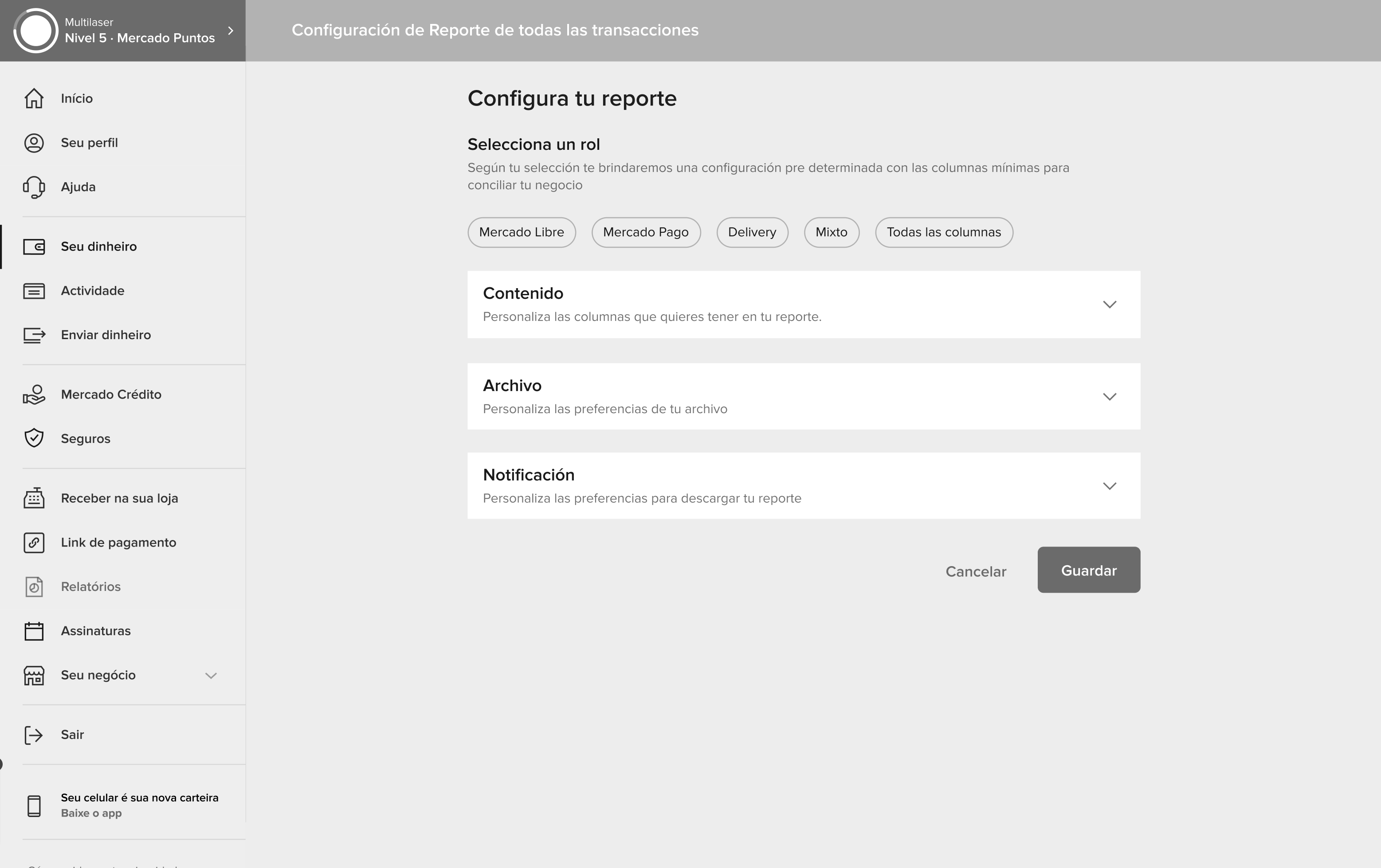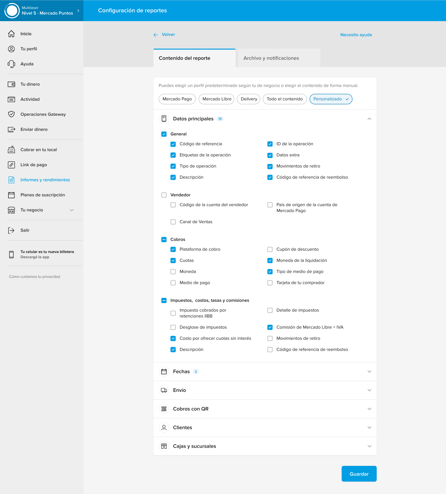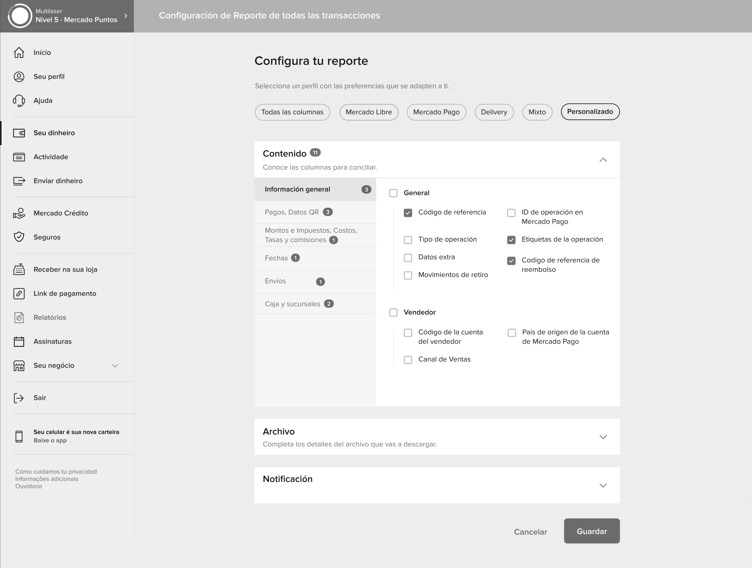 Simplifying business management for Mercado Pago sellers by redesigning the sales report configuration options. (2023)