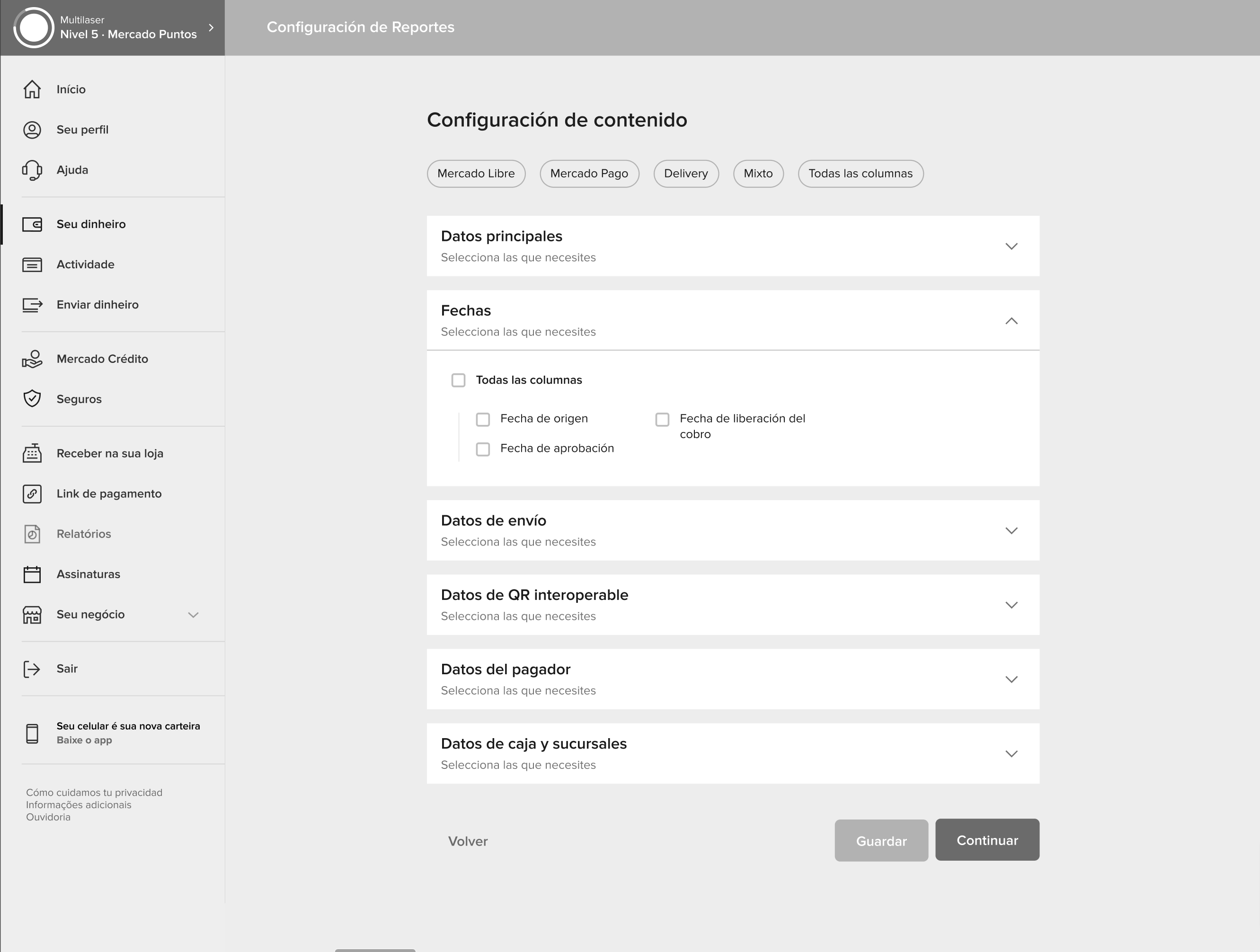 Due to the extensive amount of information in Mercado Pago’s reports, it was necessary to create order and grouping to facilitate report customization.
